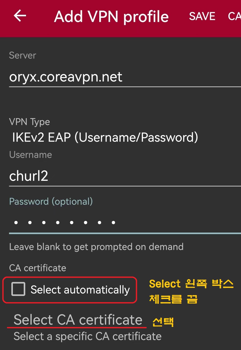 *. CoreaVPN ÀÎÁõ¼(leo-ca.pem)¸¦ »ç¿ë½Ã´Â "Select auto ... " ÀÇ ¿ÞÂÊ ¹Ú½ºÀÇ ÃÑ¾Ë ¸¶Å©¸¦ Ç®¾î¾ß ÇÕ´Ï´Ù. À§ µÎ ¹æ½ÄÀÇ Â÷ÀÌ´Â ¾Æ·¡ µÎ°¡Áö ÀÔ´Ï´Ù. *. À©µµ¿ì¿Í ¾Èµå·ÎÀ̵åÆùÀº °øÀÎ ÀÎÁõ¼ ¹æ½Ä°ú Self-Signed ÀÎÁõ¼¸¦ µ¿½Ã¿¡ Áö¿ø ÇÕ´Ï´Ù.