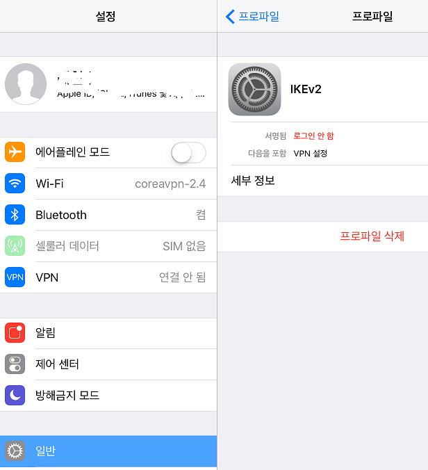 - ½ÇÁ¦·Î ÇÁ·ÎÆÄÀÏÀ» »ý¼ºÇÏ·Á¸é "ÇÁ·ÎÆÄÀÏ(profile) ÀÚµ¿ »ý¼º" À» ¿¾î¼ CoreaVPN IKEv2 °èÁ¤, ¾ÏÈ£¸¦ ÀÔ·ÂÇØ¾ß ÇÕ´Ï´Ù.(¹Ýµå½Ã »çÆÄ¸®¿¡¼ ¿¾î¾ß ÇÕ´Ï´Ù.)